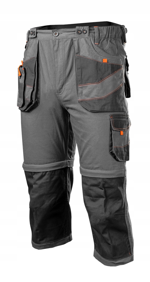 Робочі штани 6 в 1 Neo (посилання 81-321-л), виготовлені з бавовняної тканини, Twill зручні та міцні штани для всіх робіт, професійних та дому. Завдяки використанню подвійних повзунок ви можете скоротити штани до 3 довжин: короткі, рибалки та довгі з брекетами або без них. Штани можна носити 6 способами. Для розміщення різних інструментів штани були обладнані багатофункціональними кишенями . Вони також мають можливість вставити замки. Якість продукції підтверджується сертифікатом CE для дотримання EN ISO 13688: 2013. доступний у розмірах XS-XXXL.