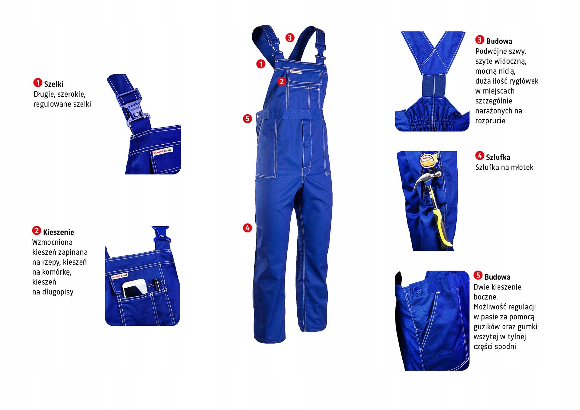 - можливість регулювання талії за допомогою гудзиків і гумки, вшитої в задню частину штанів,
