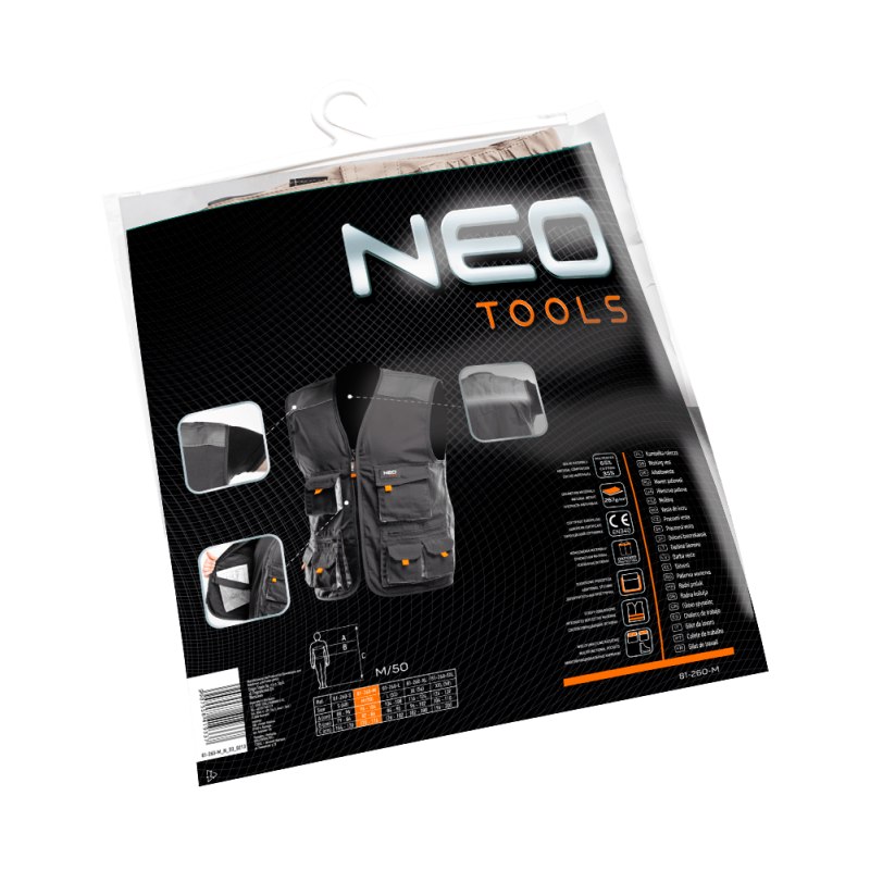 Жилет Верстак NEO (арт. № 81-260-M) — це практичне рішення для всіх видів робіт, як для професіоналів, так і для любителів DIY. Виготовлений з міцної тканини Оксфорд, що характеризується дуже хорошою стійкістю до механічних впливів. Потрійні шви, що підвищують міцність, і світловідбиваючі елементи, що забезпечують видимість користувача. Суцільні кишені витримають велике навантаження і дозволять зберігати всі необхідні під час роботи інструменти. Додатковою перевагою є кишеня для смартфона, завдяки якій ви завжди можете мати телефон при собі, не турбуючись про його збереження. Якість гарантується європейським сертифікатом та виконанням згідно стандарту EN ISO 13688:2013. Бренд NEO відповідає очікуванням професіоналів.