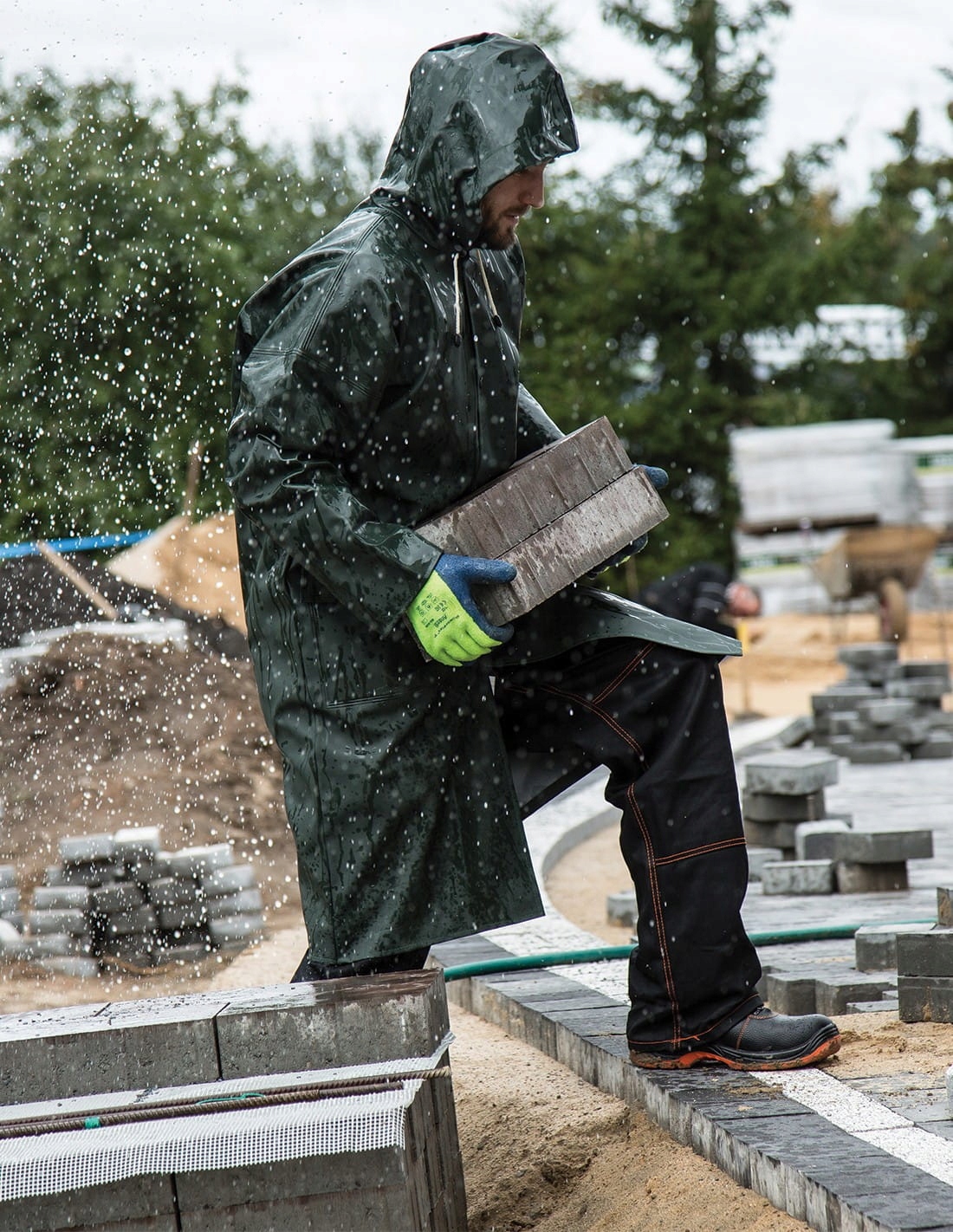 ЗАБЕЗПЕЧУЄ ПОВНИЙ ЗАХИСТ В НЕСПРИЙТИВНИХ ТА СКЛАДНИХ УМОВАХ РОБОТИ. Конструкція має основну застібку на кнопки, капюшон з регулюванням шнурка, дві передні кишені з клапанами. Модель такої довжини ефективно захищає стегна і коліна від намокання.