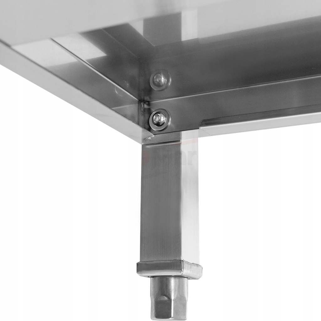 Гастрономічний стіл 2-рівневий виготовлений з високоякісноїнержавіючої сталі стійкої до механічних пошкоджень та корозія . Стільниця робочого столу посилена МДФ плитою товщиною 15 мм і сталевим профілем, що підвищує її міцність і навантажувальну здатність. безпека на роботі.