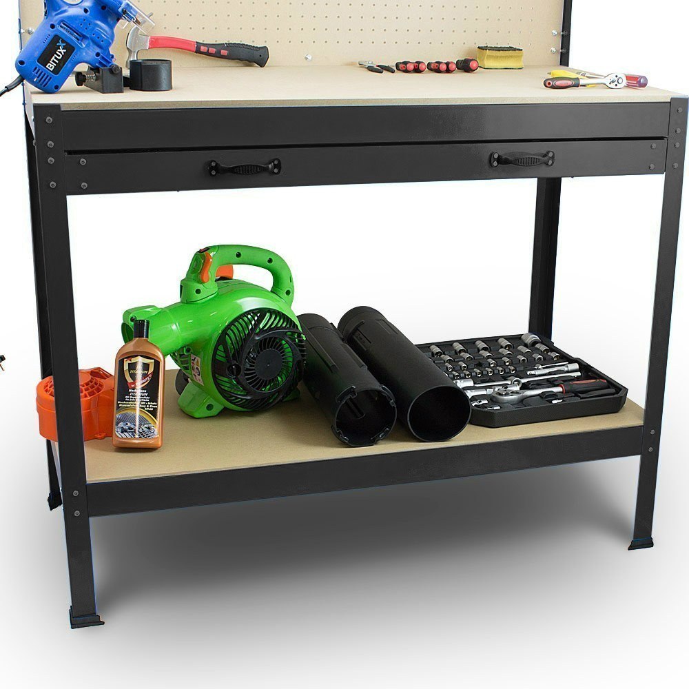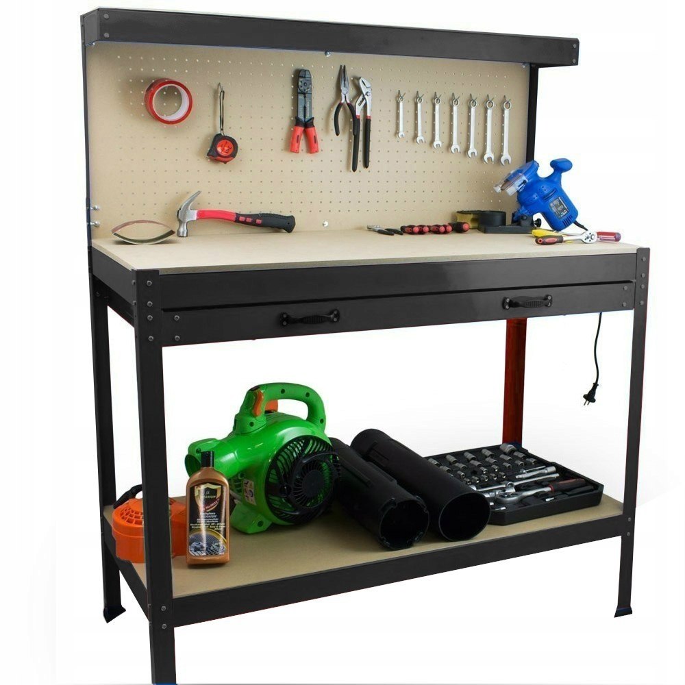 Практичний, універсальний стіл, безсумнівно, стане вдалим рішенням для кожного ентузіаста DIY. Оснащений тримачами для інструментів і висувним ящиком.