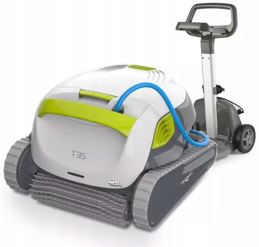 на основі останніх технологічних досягнень, Maytronics пропонує дельфіну T35 чистка. На додаток до повного очищення басейну, включаючи ДНК, стіни та водяну лінію, робот T35 видаляє забруднення та домішки завдяки оптимальній системі фільтрації. Завдяки вазі ультра -світла (7,5 кг) та швидкому воді воді, Maytronics Dolphin T35 надзвичайно простий у використанні. Багатошарова фільтрація одночасно фіксує великі домішки та невеликі та ультрашарні молекули. T35 оснащений інноваційною системою чищення, яка поєднує в собі подвійний ефект чистки та систему навігації з потужністю, що забезпечує ефективне покриття басейну та ретельне очищення незалежно від поверхні басейну.