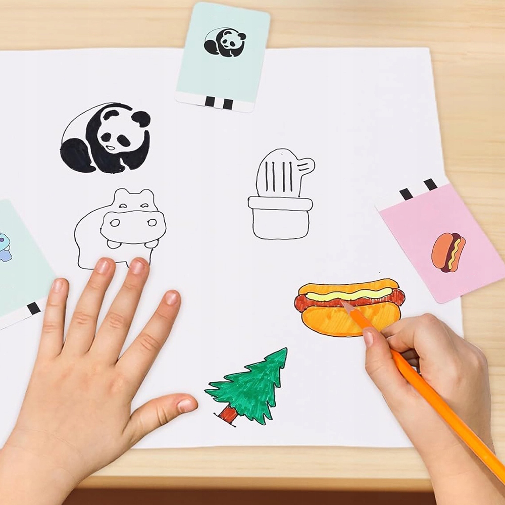 - ✨ На зворотному боці кожної картки є покрокові посібники, які терпляче ведуть дітей через процес малювання, полегшуючи початок і перетворюючи малювання на пригоду.