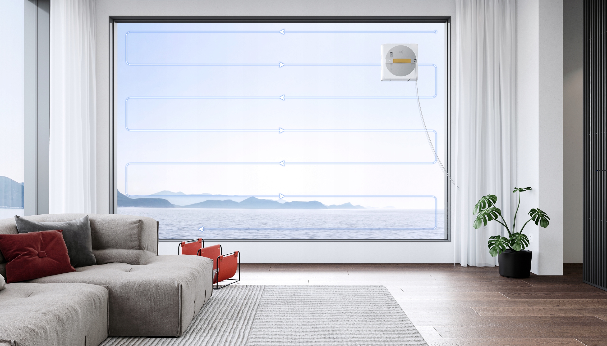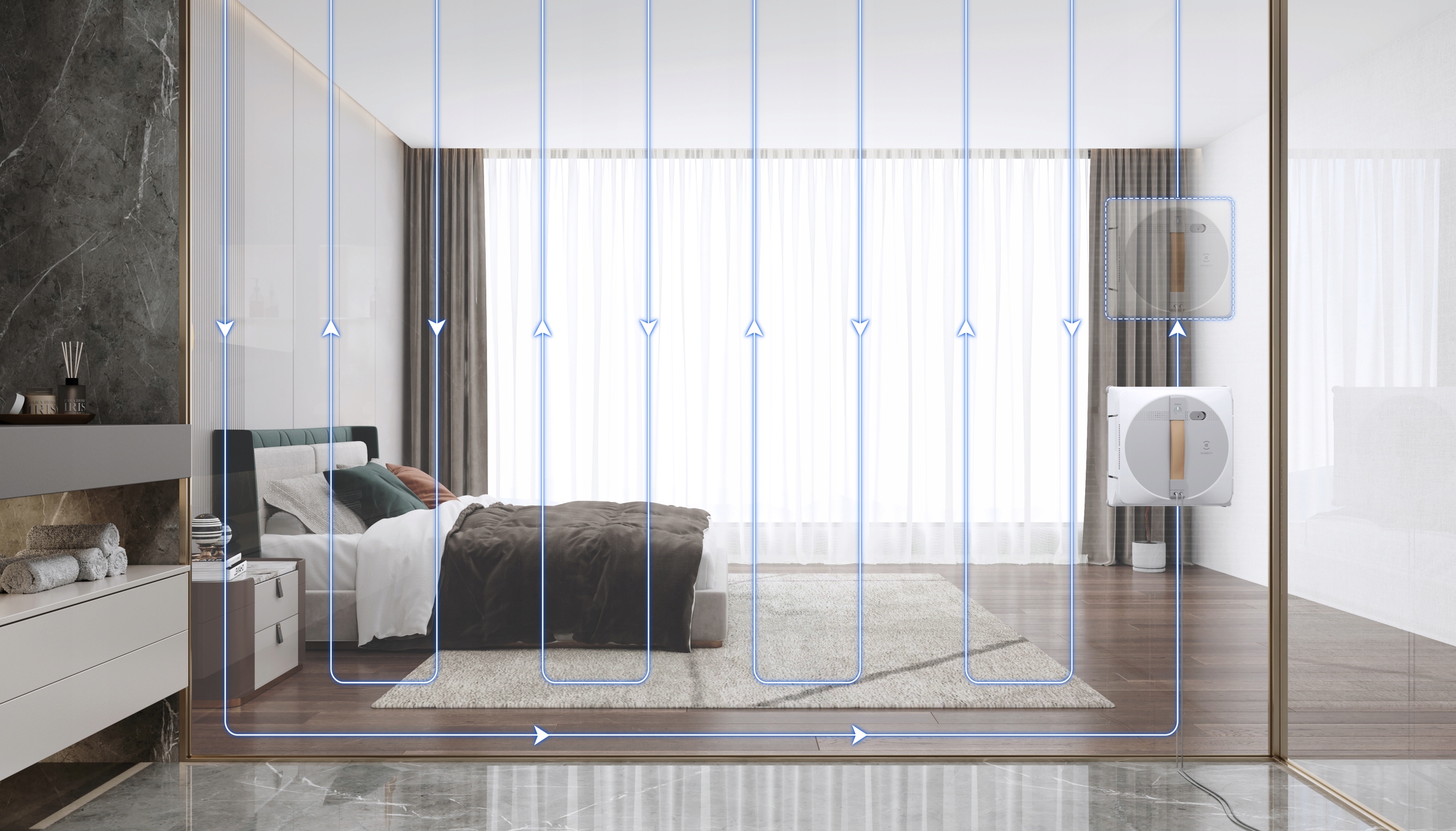 WINBOT W1 PRO автоматично очищає вікна вперед-назад, забезпечуючи повний і точний процес очищення скла в трьох адаптивних режимах: