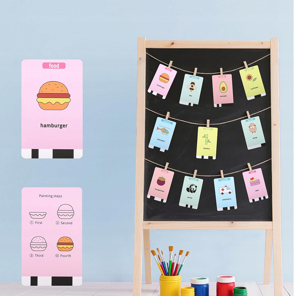 На зворотному боці кожної картки розміщено покрокові інструкції з малювання, що робить навчання веселим і захоплюючим.