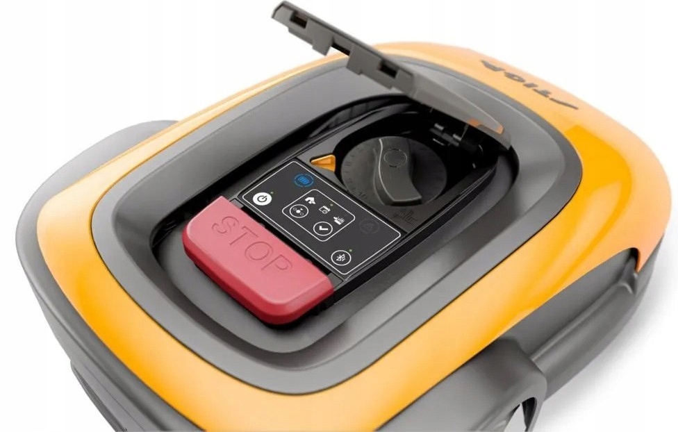 STIGA G 300 оснащена зручною панеллю керування, яка дозволяє швидко запускати та налаштовувати основні функції. Велика червона кнопка STOP забезпечує миттєву зупинку робота в екстреній ситуації, що підвищує безпеку використання 🛑.