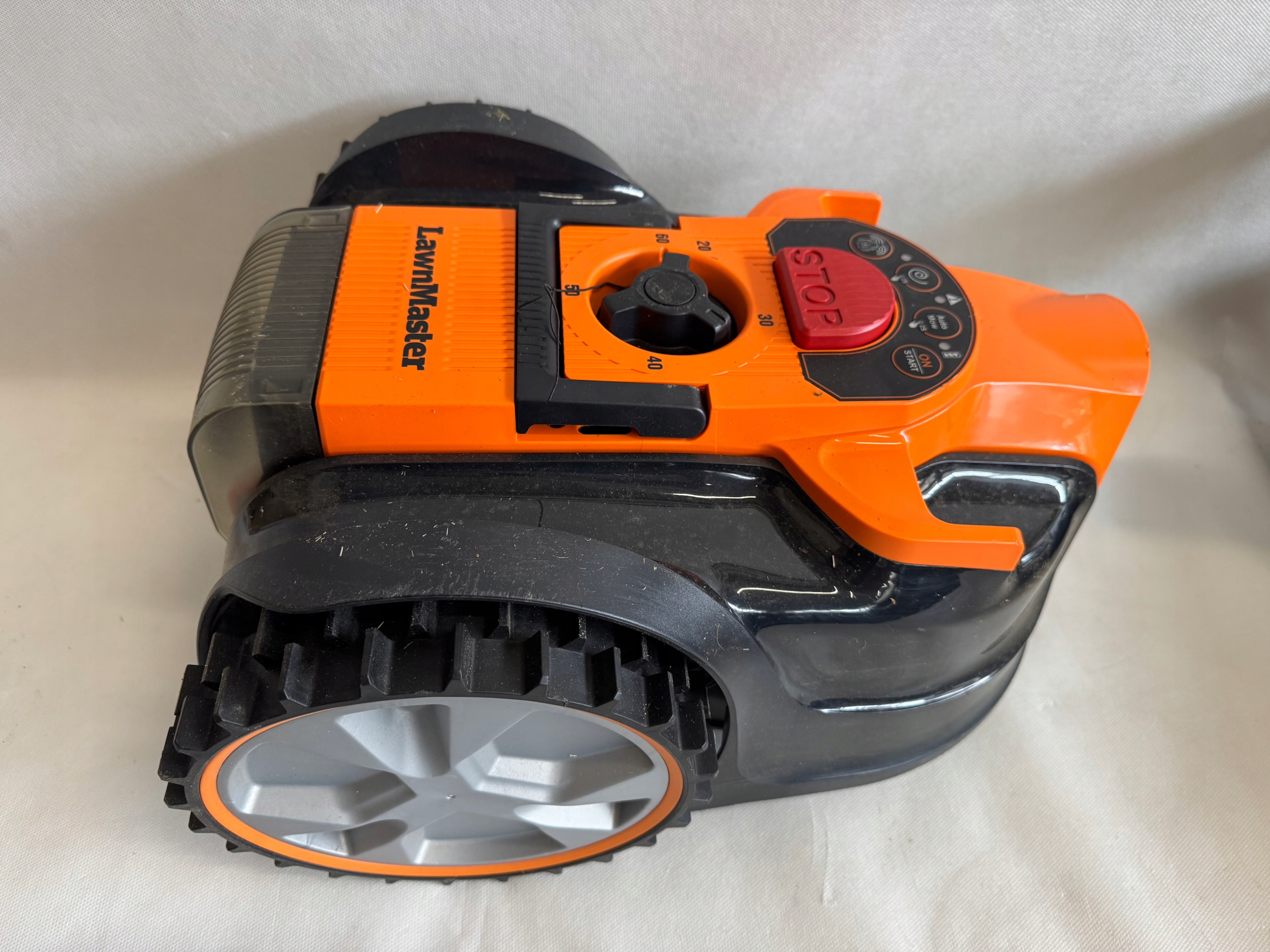 Кнопки на косарці відповідають за такі функції: режим автоматичного скошування, косию точки, вмикання та вимкнення ультразвукових датчиків. Спіральне різання, що дозволяє отримати ефект ідеально вирізаної трави.