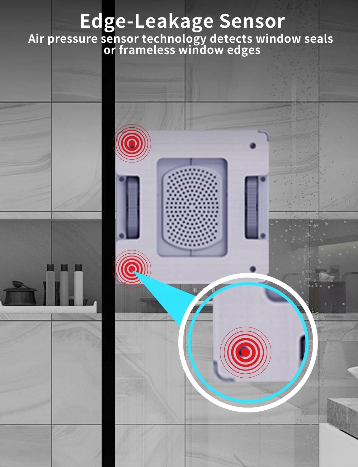 Робот для миття вікон має чотири датчики для визначення тиску повітря на краю вікна, своєчасно контролюючи край вікна, вам не потрібно турбуватися про ризик падіння, навіть якщо залишити без догляду.