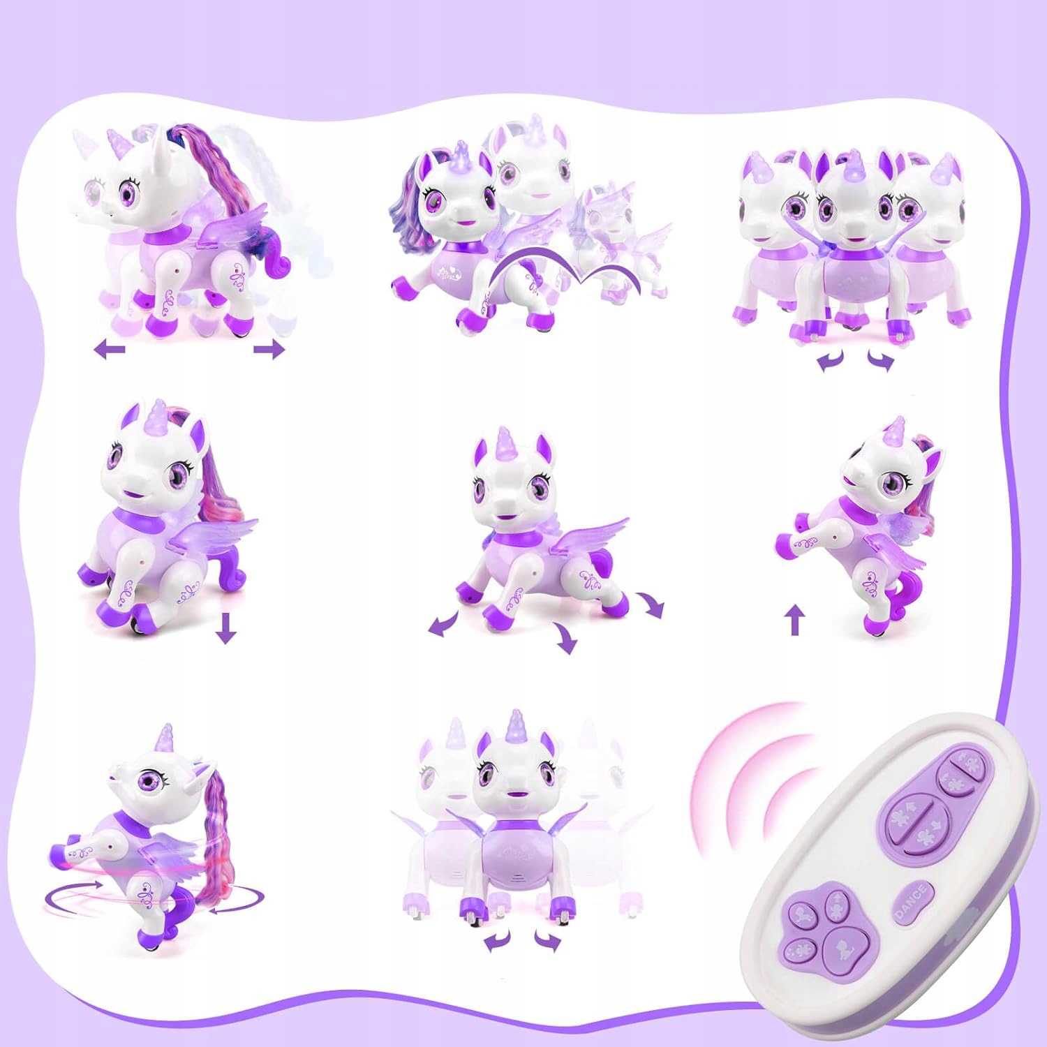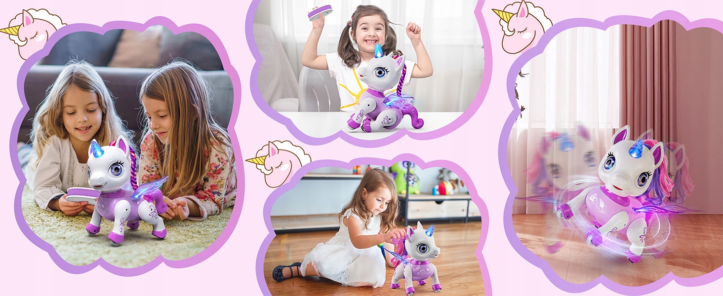 🦄🦄 Різноманітні рухи: робот-єдиноріг може стрибати, обертатися, співати й танцювати, усім керуючи за допомогою пульта дистанційного керування. Діти можуть танцювати під веселу музику і таким чином підтримувати свою інтерактивність