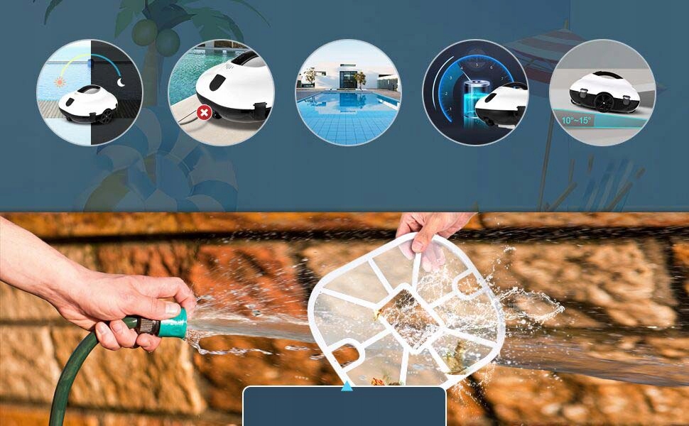 Потужне очищення дна басейну, 360° без мертвих кутів, завдяки чому вода в басейні миттєво стає дзеркальною.
