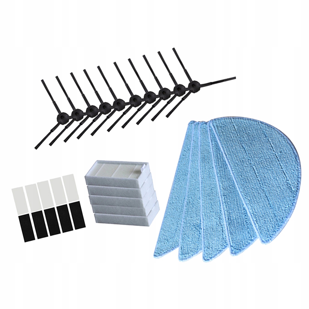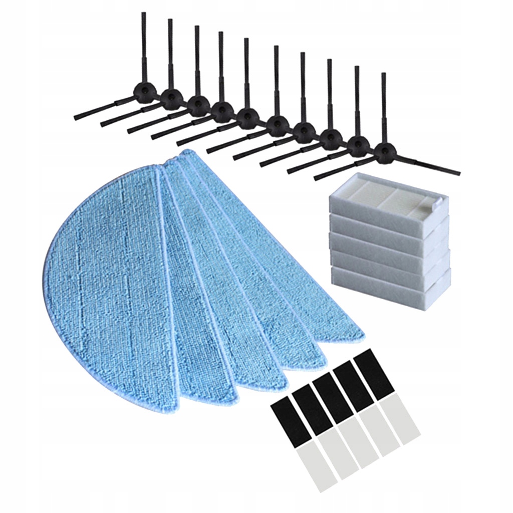 Пакет включено: 10 шт. бічної щітки + 5 шт. фільтра hepa + 5 шт. тканини для швабри + 10 шт.