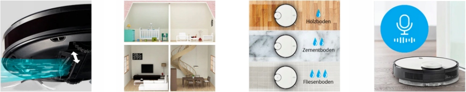 Повний набір функцій і максимальний комфорт забезпечується практичний додаток для мобільних пристроїв з iOS і Android. Ви можете використовувати його, щоб переглядати карти свого будинку, і ваш новий будинок допоможе прибрати саме там, де вам це потрібно. Тут ви завжди можете контролювати продуктивність всмоктування та витирання - як з дивана, так і в дорозі. Коли справа доходить до прибирання, залишається лише одне: підняти ноги та розслабитися!
