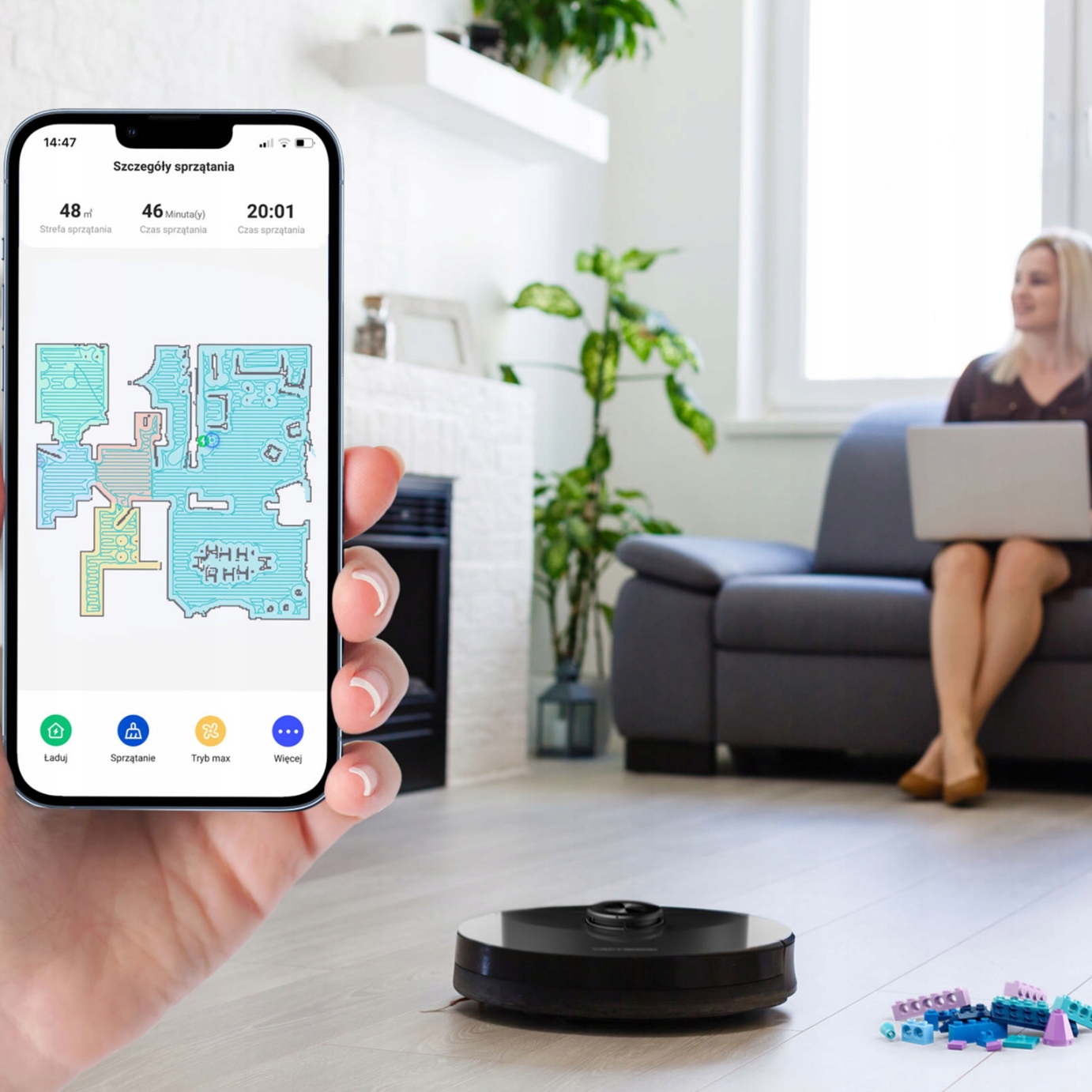 Завдяки вдосконаленій лазерній навігації з алгоритмом SLAM робот активно сканує приміщення, створюючи карту в мобільному додатку. Завдяки цьому робот може уникати позначених об’єктів, що забезпечує більшу точність і швидке очищення.