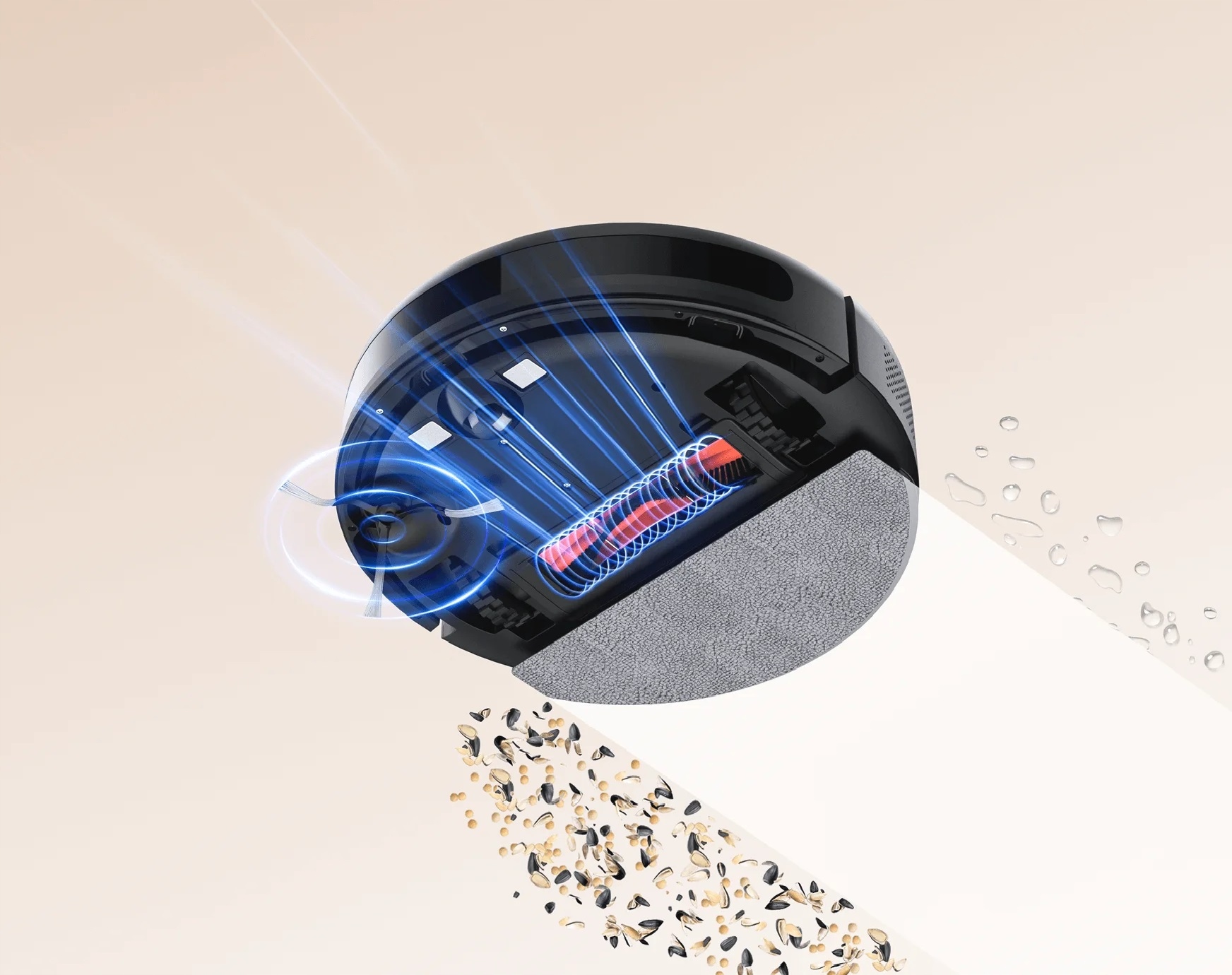 Високоякісні інтегровані деталі, включаючи бічну щітку, основну щітку та пилозбірний фільтр, з різносторонньою координацією забезпечують повне та ефективне очищення.