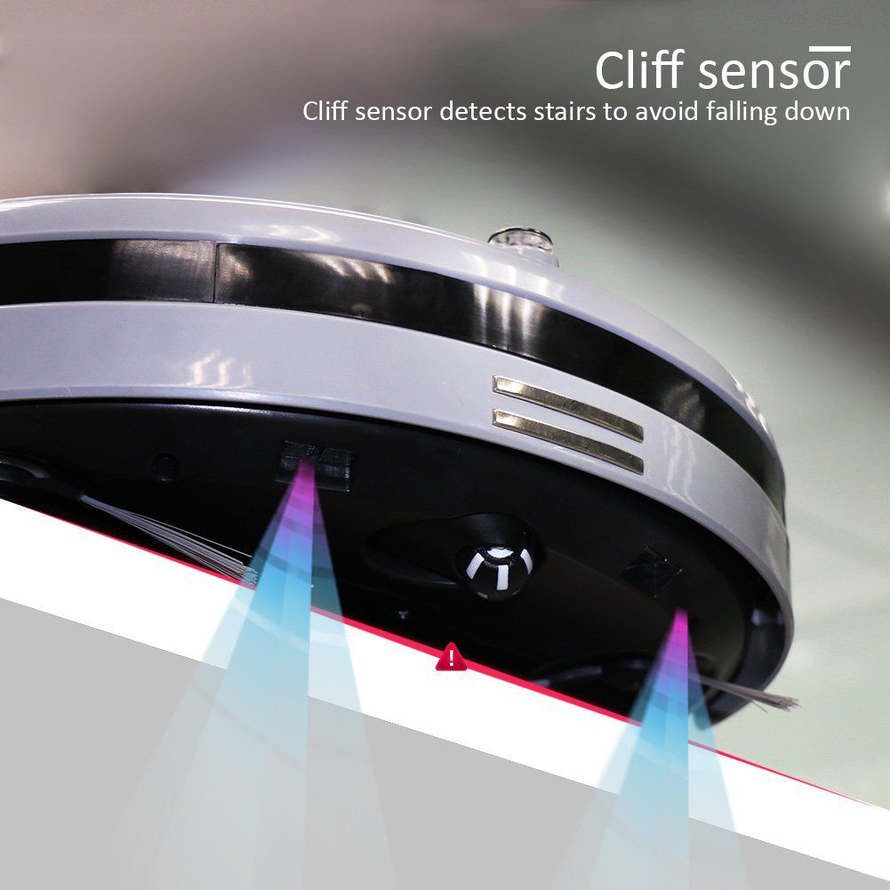 - З інфрачервоними датчиками. Робот має датчики проти удару, які контролюють швидкість, коли робот наближається до перешкоди. Він має функцію виявлення світла: він не зупиниться під ліжком чи диваном, коли батарея майже розрядиться.