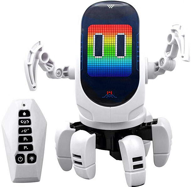 Крім робота, в набір входить пульт дистанційного керування з кнопками, позначеними значками, і кожна з них призначена іншу функцію. Запрограмуйте робота, надавши йому до 15 команд для повторення послідовності рухів у незмінному порядку. Істота рухається характерним чином, повертаючи тіло і голову навколо власної осі, а потім рухаючись у заданому напрямку. Octobot також може танцювати трьома різними способами. Завдяки динамічному світлодіодному дисплею задоволення стає ще привабливішим.