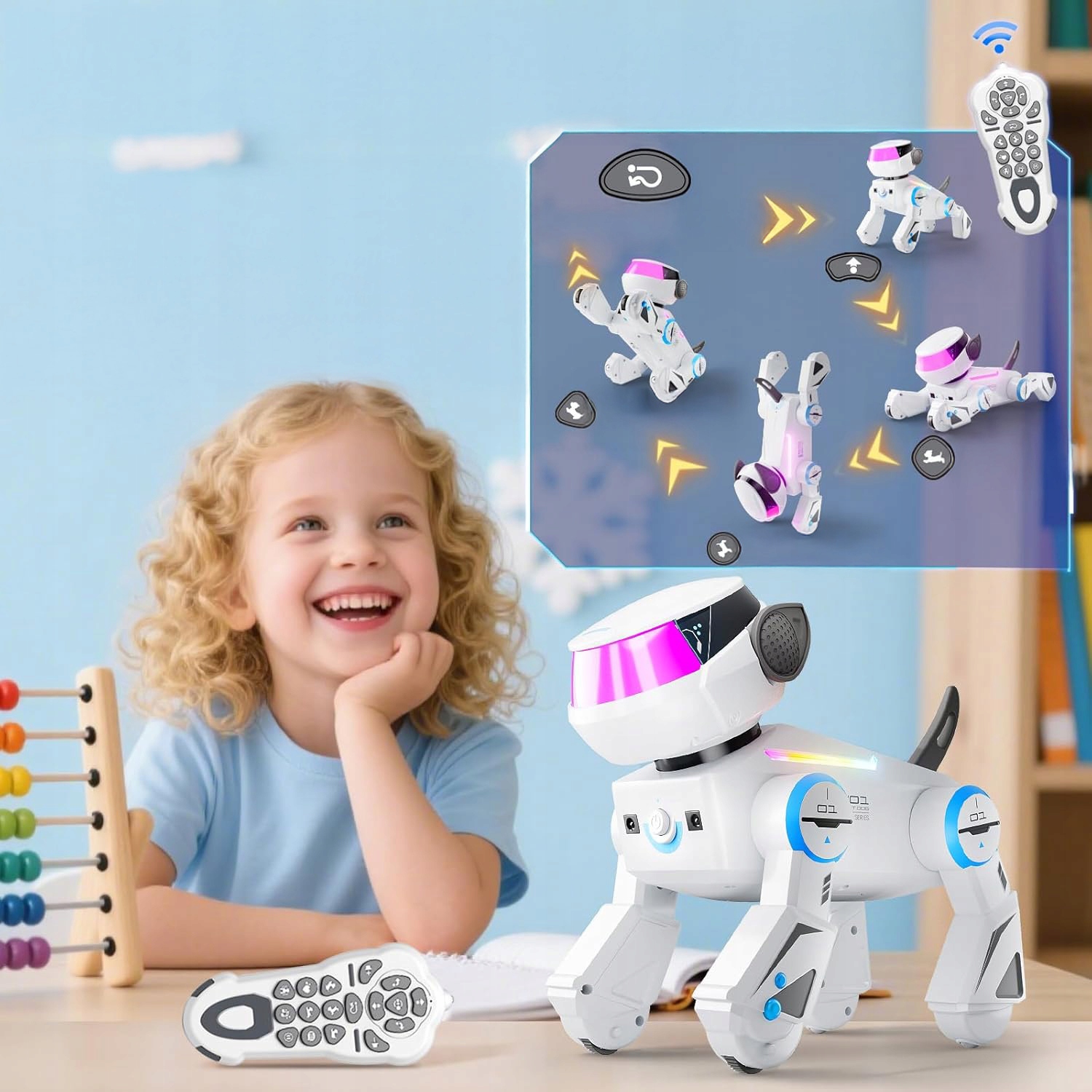 За допомогою 100 послідовностей команд, які можна налаштувати, діти можуть створювати персоналізовані комбінації дій, наприклад «сидіти → стояти → співати → танцювати». Робот-собака точно виконує кожну запрограмовану команду, забезпечуючи неперевершений інтерактивний досвід. Діти відчувають себе так, ніби вони розмовляють зі справжнім електронним вихованцем, стимулюючи логічне мислення та творчі здібності через гру.