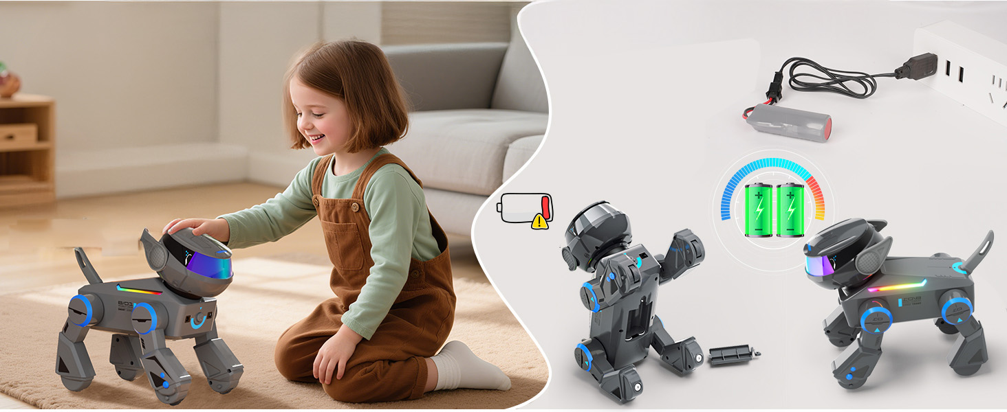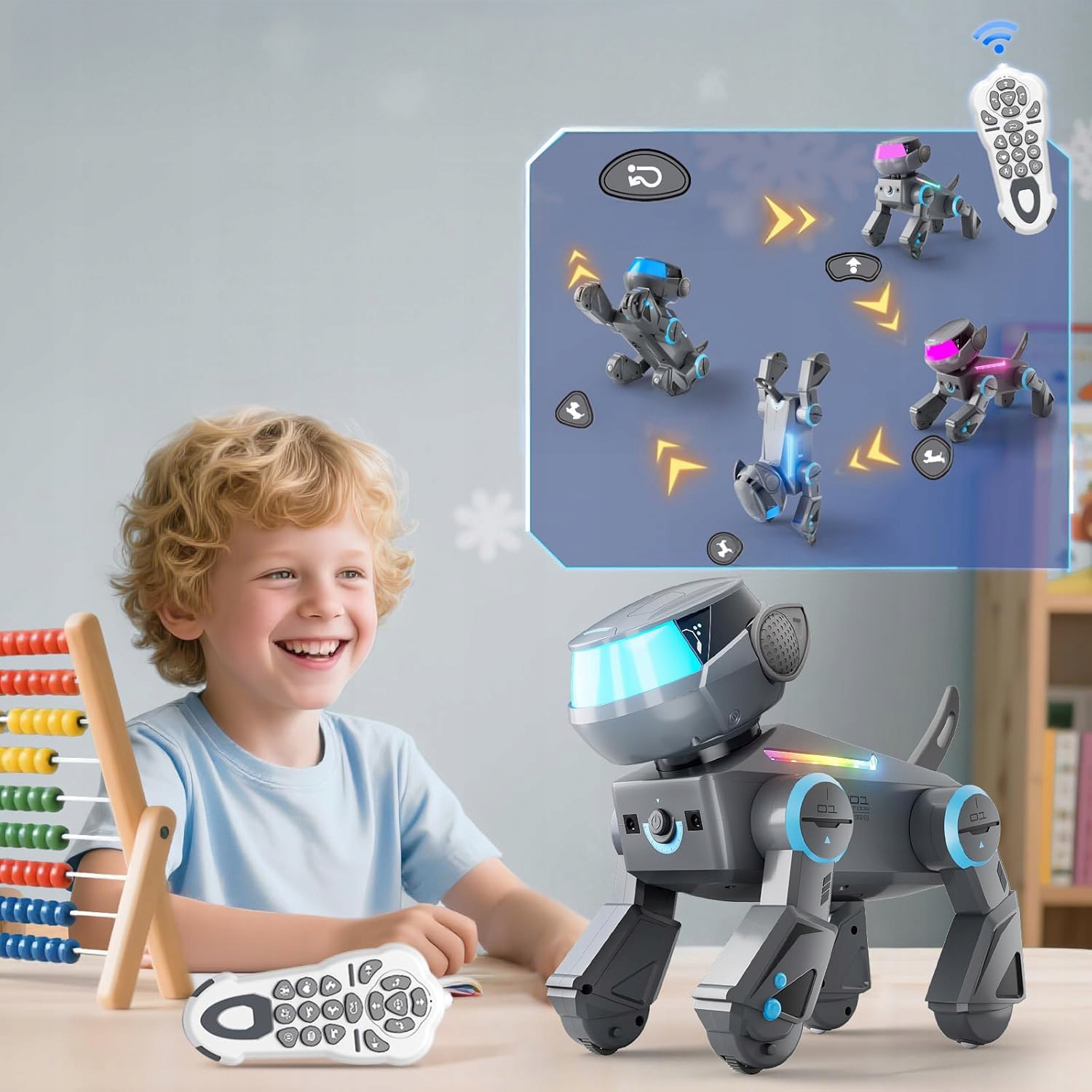 Завдяки 100 настроюваним послідовностям команд діти можуть створювати унікальні комбінації дій, наприклад «сидіти → стояти → співати → танцювати». Робот-собака точно виконує кожну запрограмовану команду, забезпечуючи неперевершений інтерактивний досвід. Діти відчувають себе так, ніби вони розмовляють зі справжнім електронним вихованцем, розвиваючи логічне мислення та творчі здібності через гру.