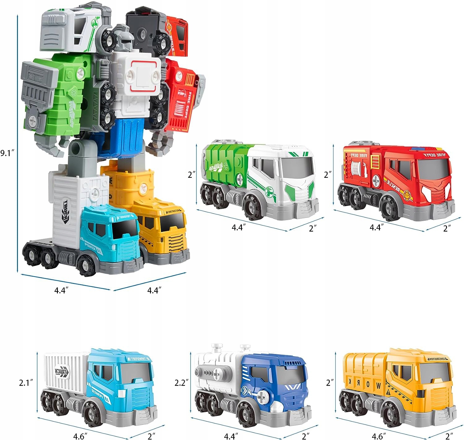 ✅- З 5 вантажівок ви можете зібрати їх у роботи-іграшки для більшої розваги.
