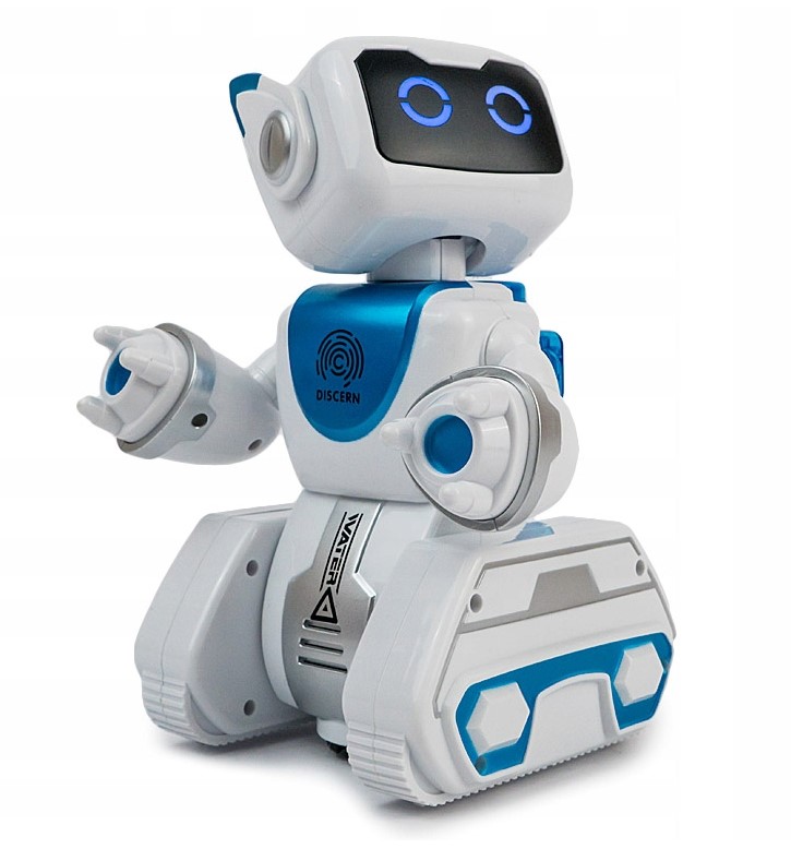 Робот K11 подарує дітям масу задоволення під час гри. Він рухається в будь-якому напрямку, і коли він стикається з перешкодою, він проходить її, повертає заднім ходом і рухається далі. На передній панелі він має активний сенсорний екран b>, після дотику до нього реагує рухом голови та звуком! Робот розмовляє мовою робота, а після натискання відповідних кнопок на пульті також танцює під його музику або йде на патрулювання .