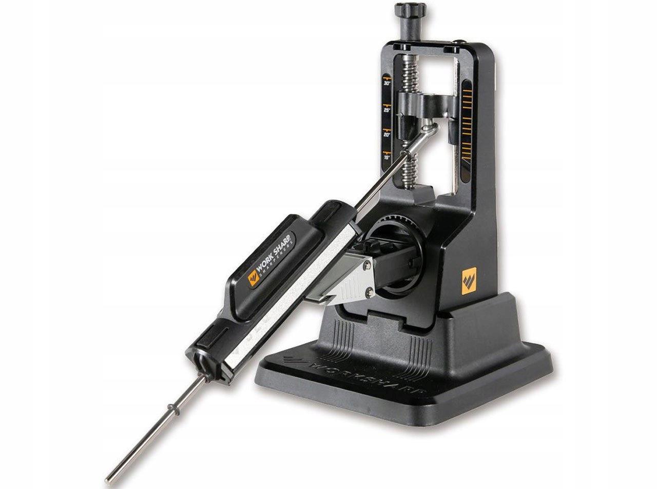 Робота різка точність регулювання затоки ножа - це ручна точилька ножа з регульованим кутом і трьома різними абразивними зернами, забезпечуючи високу кількість заточування. Кут заточення можна зручно відрегулювати в діапазоні від 15 ° до 30 ° на етапах кожні 1 °, щоб забезпечити оптимальне заточення будь -якого ножа. Три-метр-заточковий камінь містить алмазні плитки з 320 та 600 зернистими для швидкого заточення та керамічного каменю для точного заточення. Інноваційна конструкція кріплення швидко та безпечно блокує ніж. Корпус - це стабільна і міцна основа для заточення столу або кухонного прилавку.