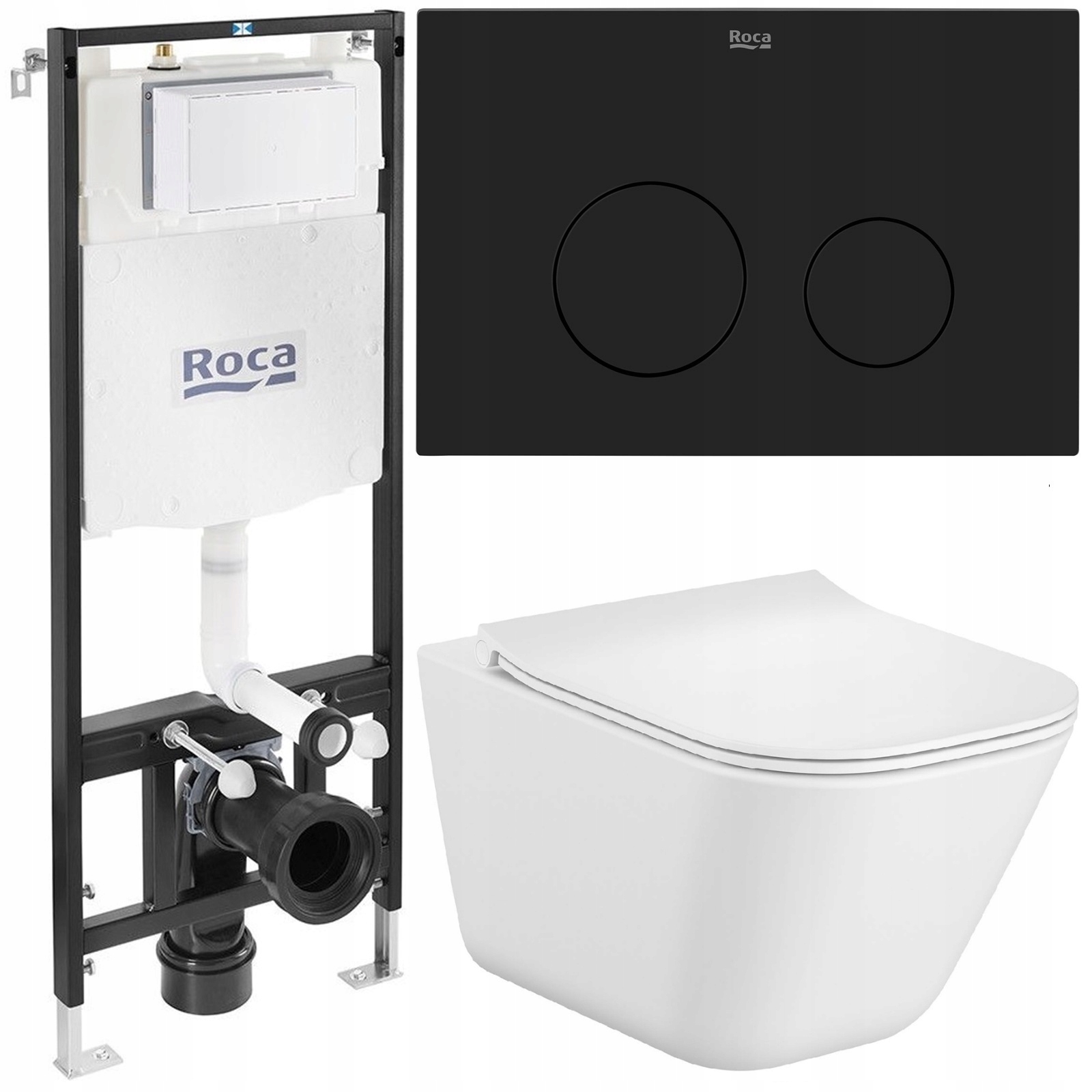 ROCA CONCREATED WC SET SLIM BOWL GAP SUPRAGLAZE RIMLESS BUTTON BLACK