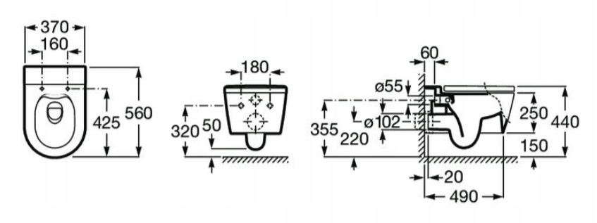 - 1 x підвісний унітаз Roca Inspira Square без оправи