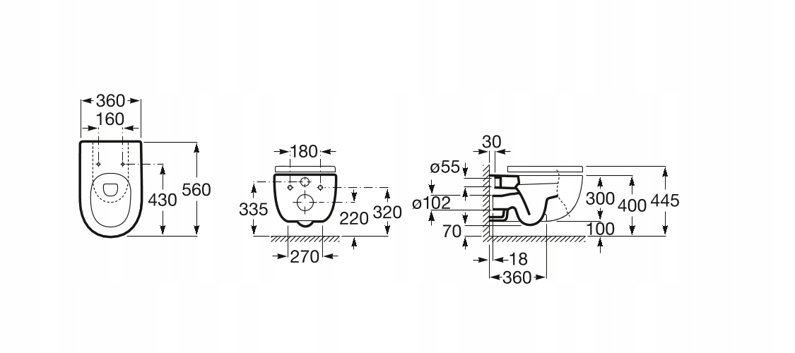 Roca Meridian Bowl підвішений туалет безперешкодно 56 см