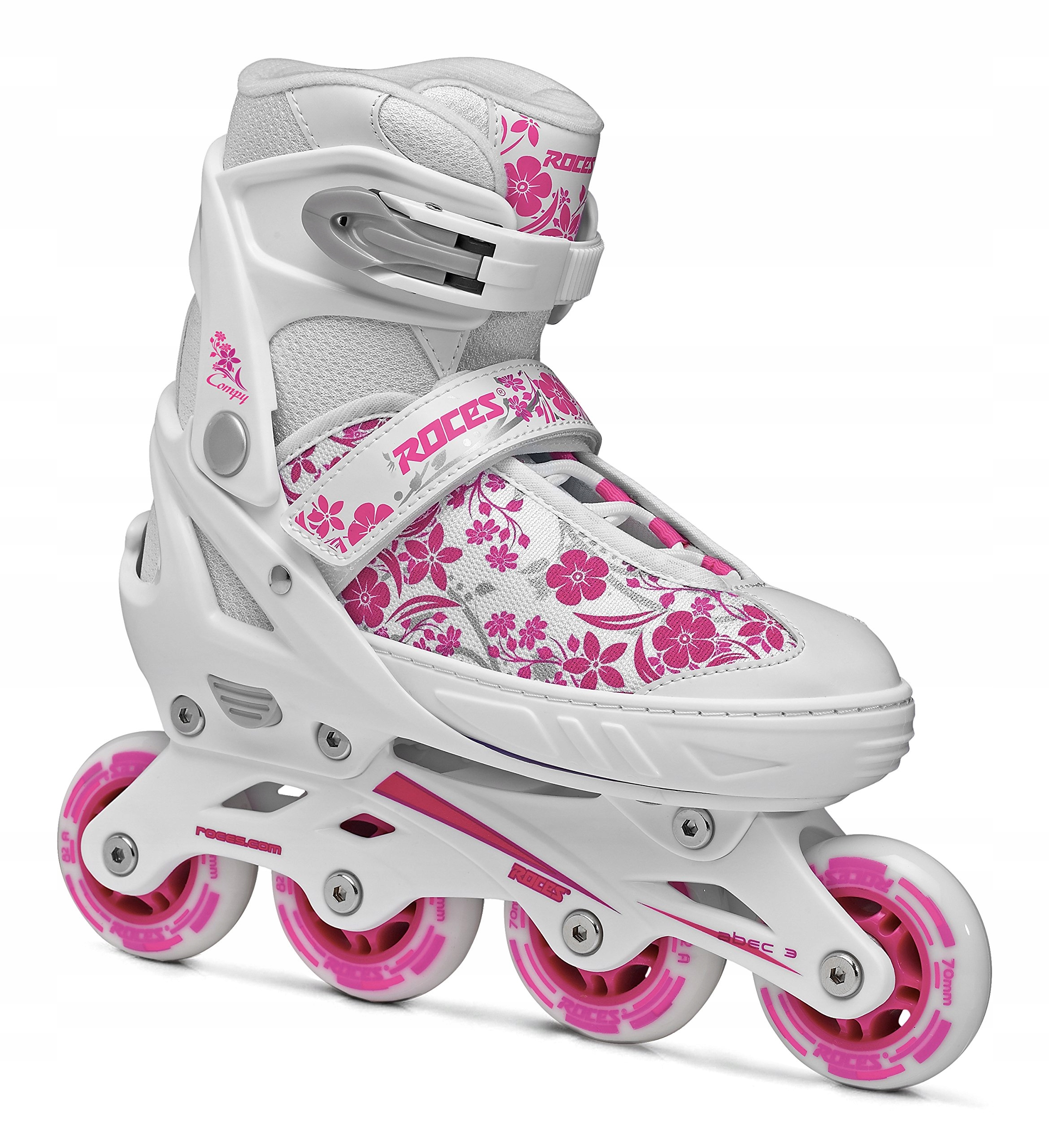 Використання ковзанів зручно завдяки анатомічній підкладці та спеціальній дитячій вставці. Рейка, виготовлена з міцного, стійкого до скручування поліпропілену штаб -квартири, забезпечує стабільність та безпеку під час руху. Ролики діаметром від 64 до 72 мм/82 А, оснащені кульковими підшипниками ABEC 3, є міцними і забезпечують хорошу адгезію на поверхню.