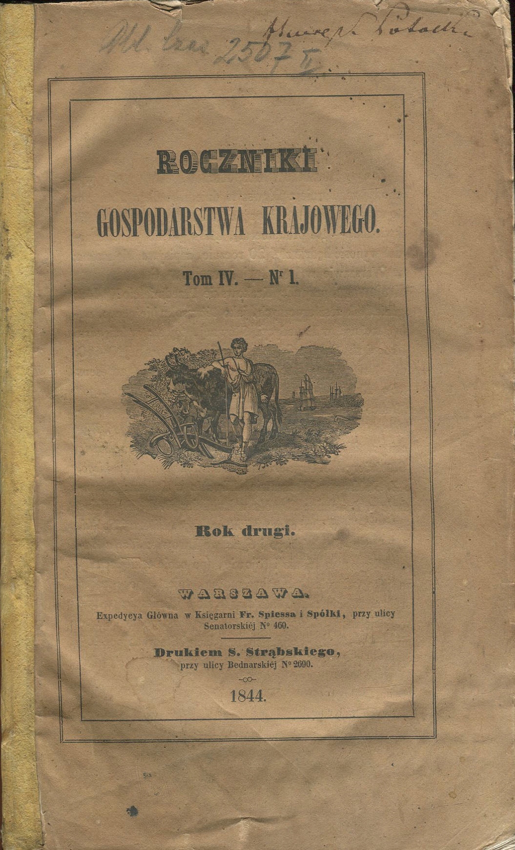 Roczniki Gospodarstwa Krajowego 1844 konie Eberhard włościanie cukrownictwo