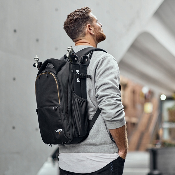 рюкзак Røde - це транспортний пакет, призначений для замовлення для серії інтегрованих виробничих досліджень подкастів Rødecaster, включаючи rødecaster pro та rodecaster pro II .