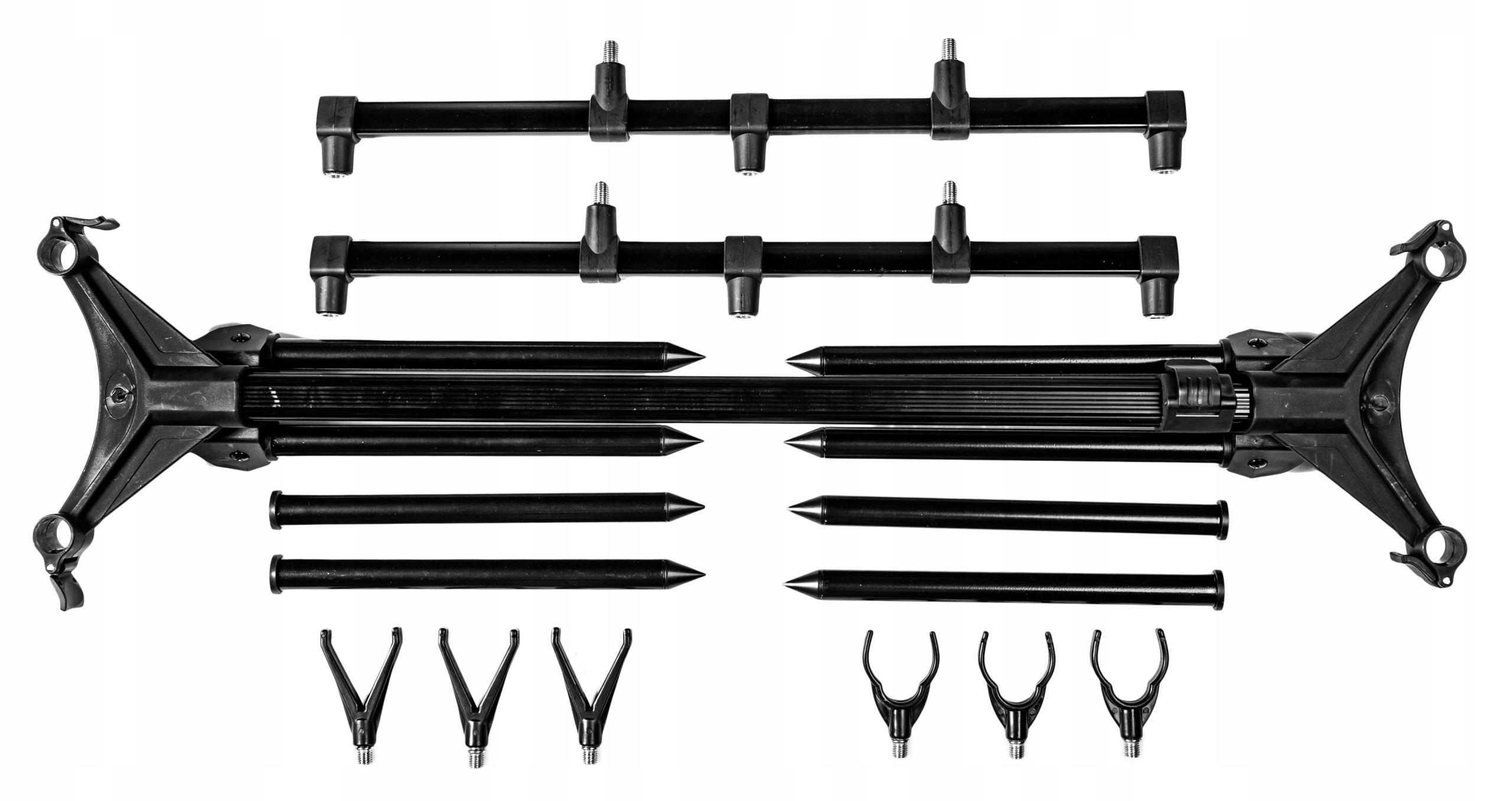 Професійна позиція коропа для трьох стрижнів. Суцільна продуктивність гарантує впевненість під час риболовлі. Риболовецька підставка, завдяки якій риболовлі може бути ще приємнішим.