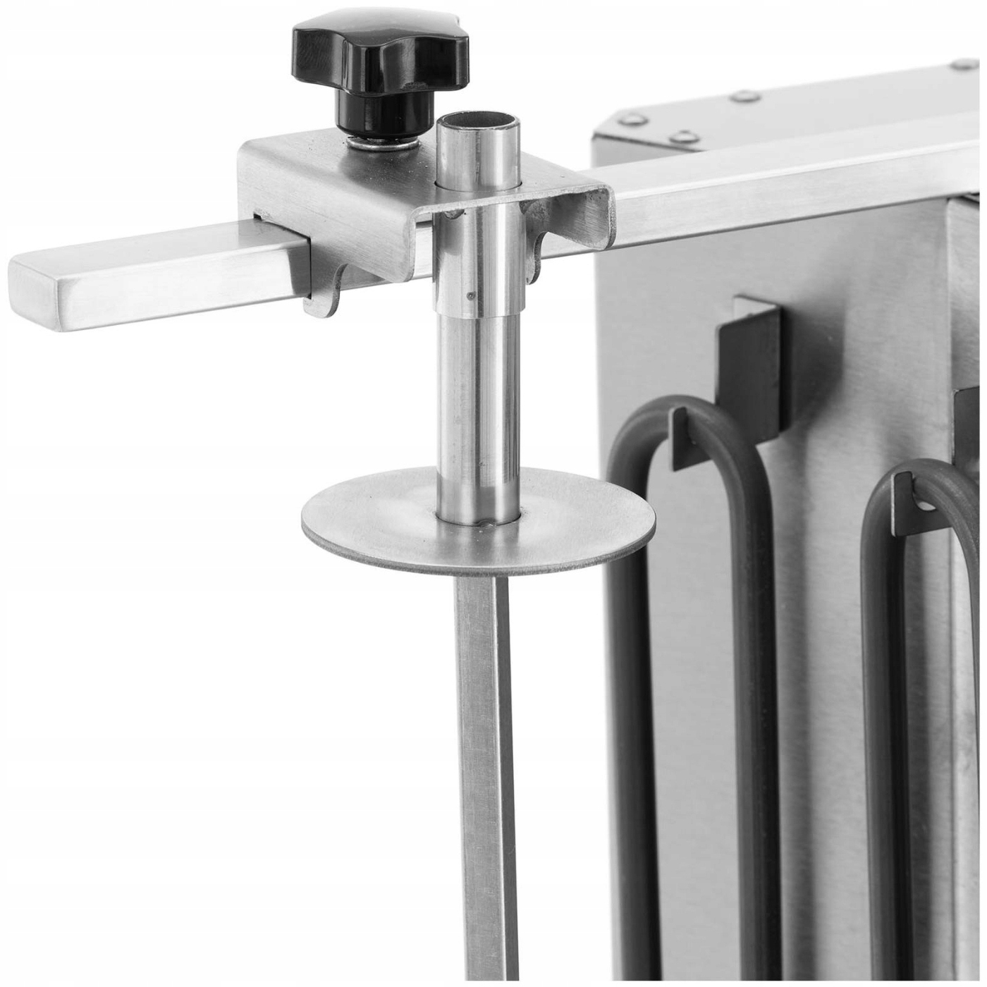 На шампур можна насаджувати м'ясо вагою до 8 кг і висотою 180 мм. Це дозволяє використовувати гіроскутер для приготування невеликих порцій, які ви час від часу пропонуєте. Незважаючи на це, гриль надзвичайно міцний навіть після тривалого використання і завжди дозволяє нарізати шматочки смачного м’яса на шматочки розміром з укус.