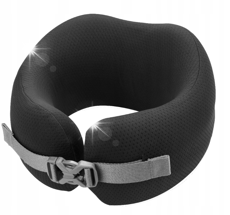 Дорожня подушка з термопластичної піни (піна з ефектом пам'яті). Забезпечує підтримку голови в зручному положенні. Подушка має регульовані застібки, тож ви можете регулювати її розмір на шиї.