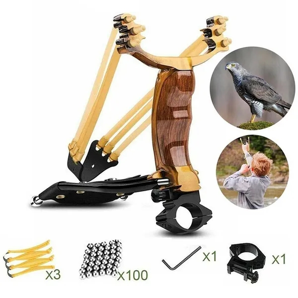 1. [Y Shot Slingshot]: наша професійна мисливська рогатка з широкою дугою та потрійними гумовими стрічками. Ергономічна, плавно регульована ручка надійно та зручно лежить у руці.