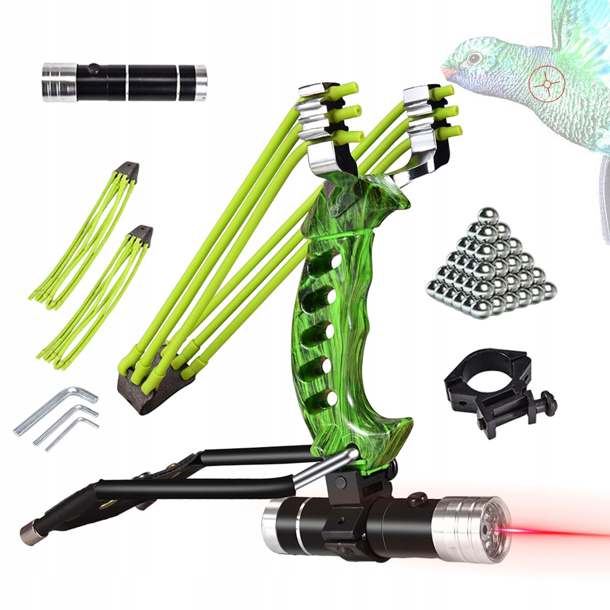 Міцна алюмінієва рогатка з лазерним прицілом для професійного полювання на 100 сталевих куль (зелена)