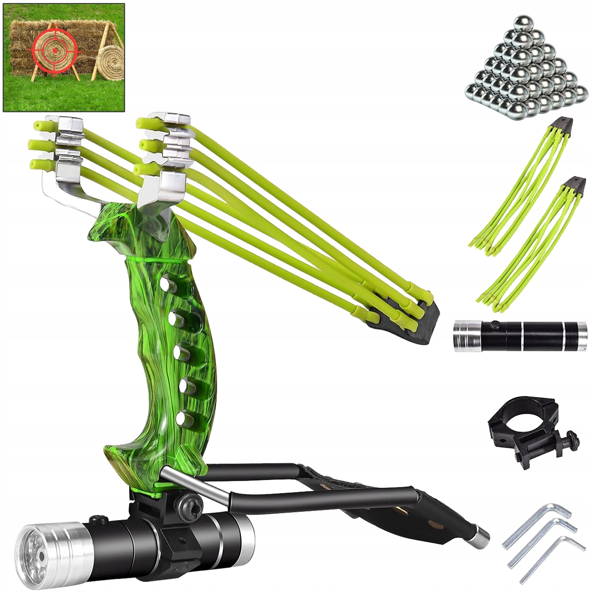 🔎🔎🔎 Міцна рогатка з металевого сплаву з лазерним прицілом для професійного полювання, оснащена 100 сталевими кульками (зеленого кольору)🔎🔎🔎