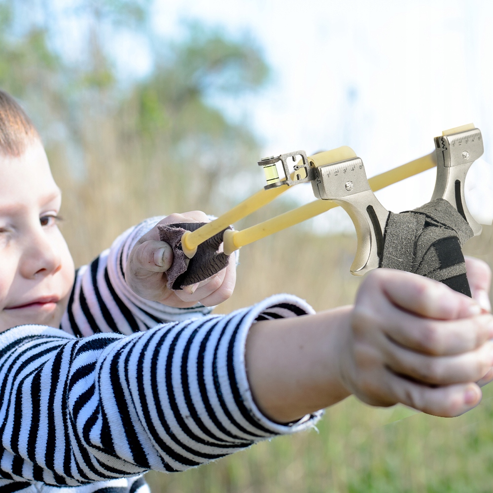 Ця міцна рогатка з нержавіючої сталі ідеально підходить для пригод на природі. Він компактний, портативний, легко збирається та тримається. Підходить для дорослих і дітей.