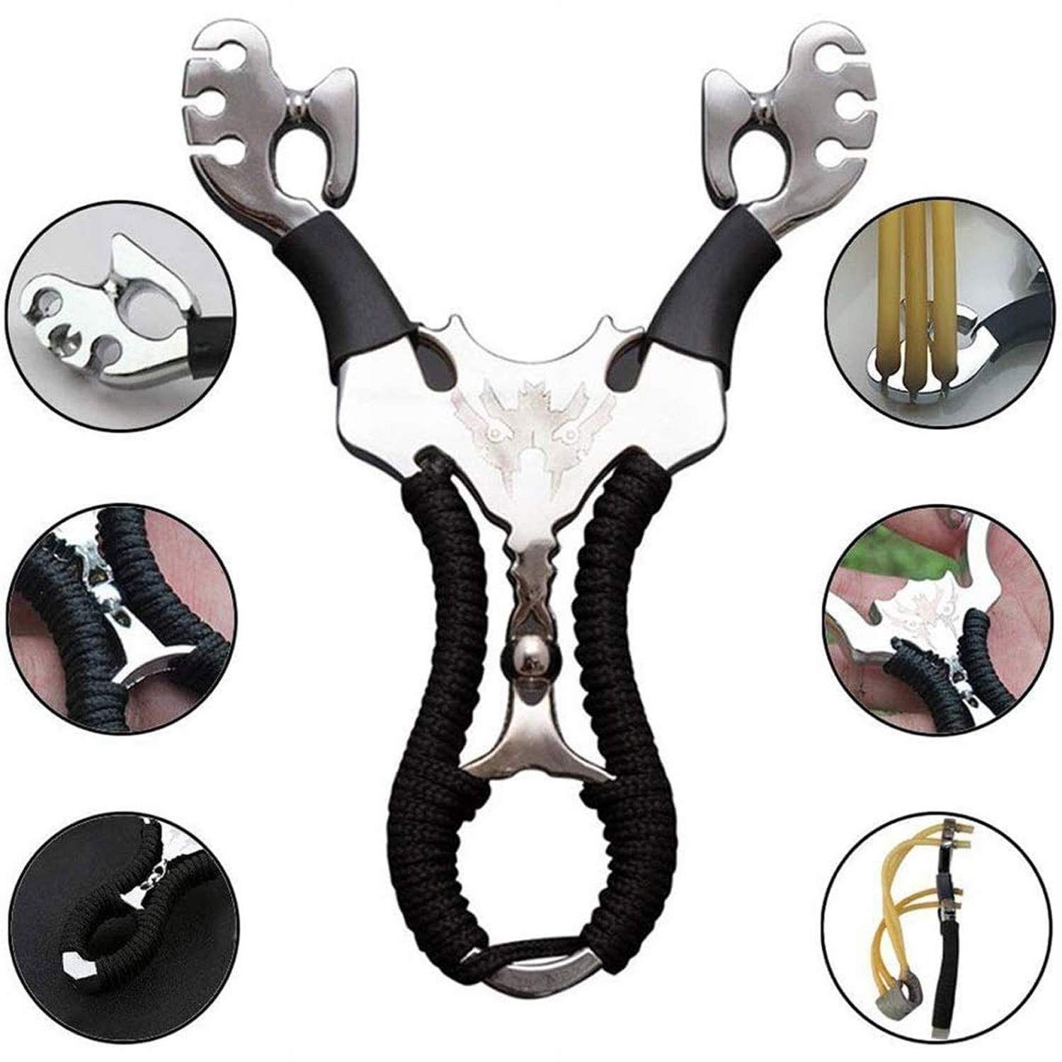 Оснащена трьома гумовими нитками, наша рогатка забезпечує більшу потужність, додаткову дальність і точність, ідеально підходить для полювання та тренувань.