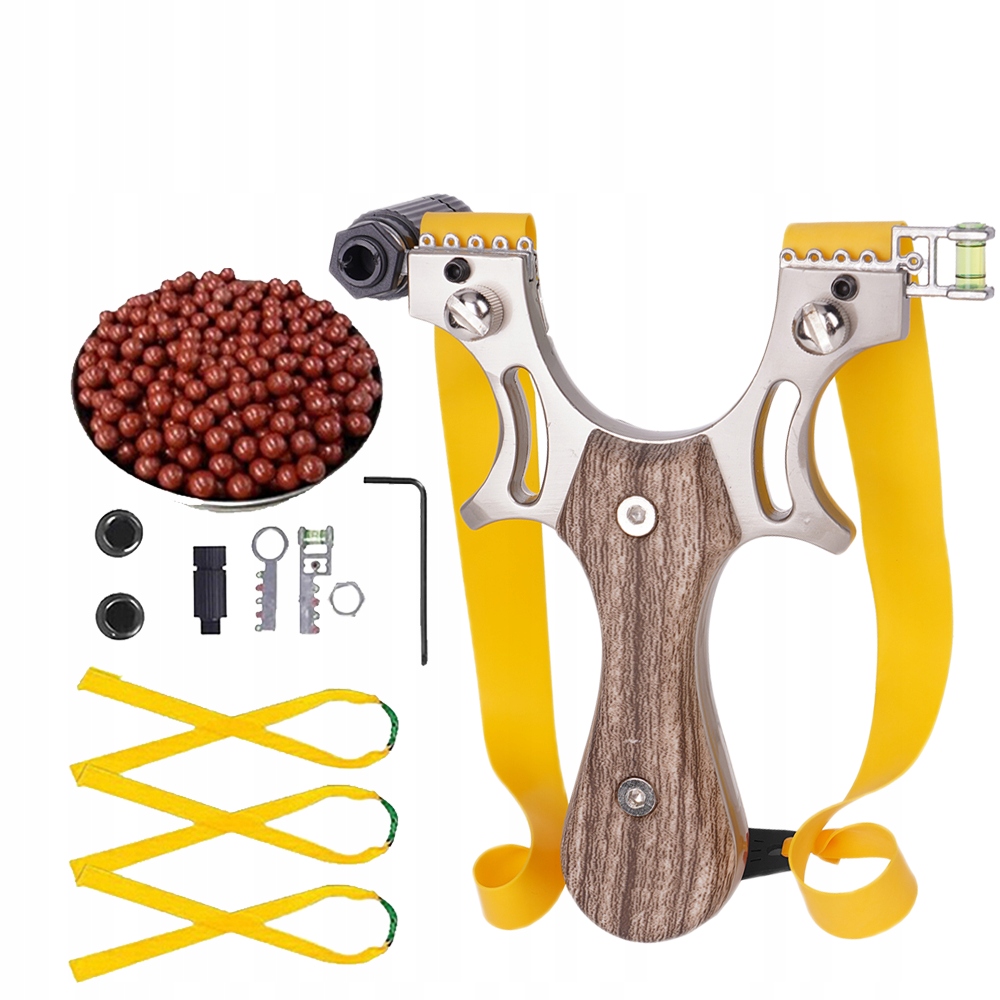 📦📦Вміст упаковки: 1x рогатка+3x гумки+1x механічний приціл+1x гайковий ключ+100x твердих глиняних кульок для амуніції