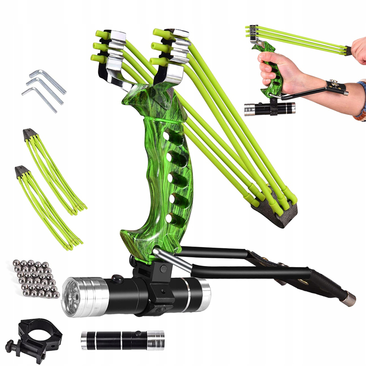 Міцна алюмінієва рогатка з лазерним прицілом для професійного полювання на 100 сталевих куль (зелена)