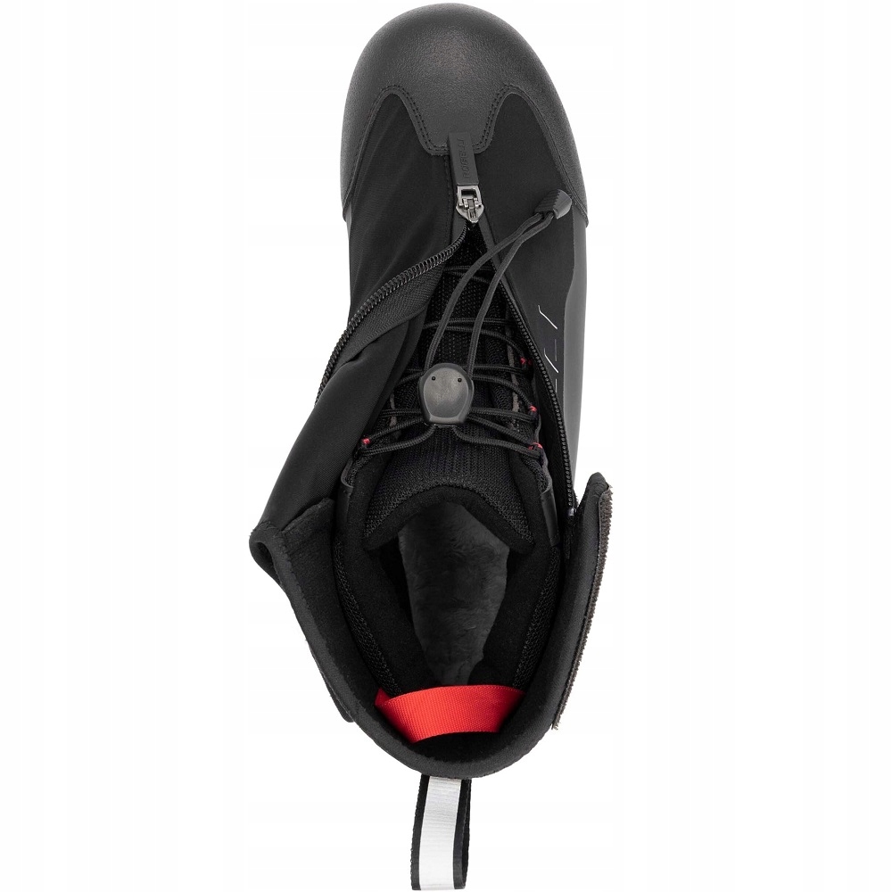 • ізольоване зимове велосипедне взуття MTB, яке дозволяє підключати педалі в системі SPD • дихаючий і водонепроникний мембранний матеріал у верхній частині взуття • внутрішній утеплювач 3М з приємним на дотик утепленим ворсом • петля для зручного одягання та інші світловідбиваючі елементи • внутрішній черевик із швидким регулюванням шнурка, зовнішня оболонка з водонепроникною, асиметрично розташованою блискавкою та подвійною липучкою • міцна ламінована підошва з гумовими шипами для ходьби в полі з подовженим наконечником для запобігання провалу в полі • стійкий матеріал на підборах і по всьому колу взуття підвищує стійкість і водонепроникність в нижній частині • до взуття додані металеві шипи, які можна закріпити на носку та збільшити опір підошви під час ходьби • знімна устілка з ніжною підкладкою з овчини.