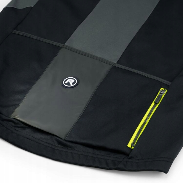 Застібка-блискавка на всю довжину закріплена під підборіддям за допомогою тканинної вкладки для захисту від подразнення. Крім того, блискавка покрита шаром матеріалу, який захищає одяг під ним. Подовжена спинка оброблена гумовим поясом із силіконовим антиковзанням. Рукава подовжені та оброблені широкими еластичними манжетами. Піднятий комір додатково захистить від холодного вітру. На грудях єкишеня на блискавці. Усередині кишені є отвір, через який ми можемо вивести кабелі навушників. Задня частина має відкриту кишеню з трьох частин. Крім того, у нас є одна кишеня на блискавці. Світловідбиваючі елементи гарантують видимість і безпеку в темний час доби і під час поганих погодних умов.