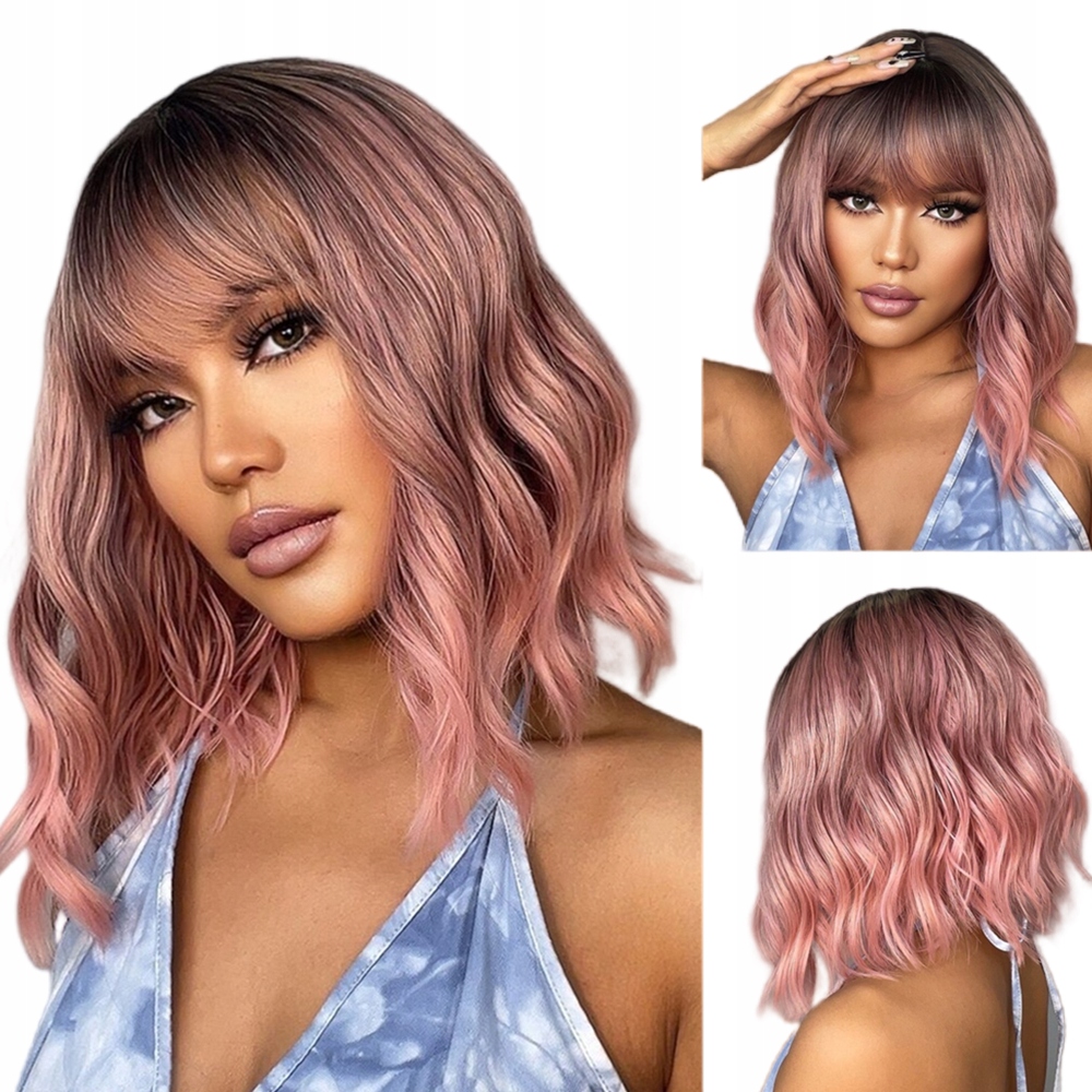 Рожева довга перука Ombre з природними хвилями на плечах