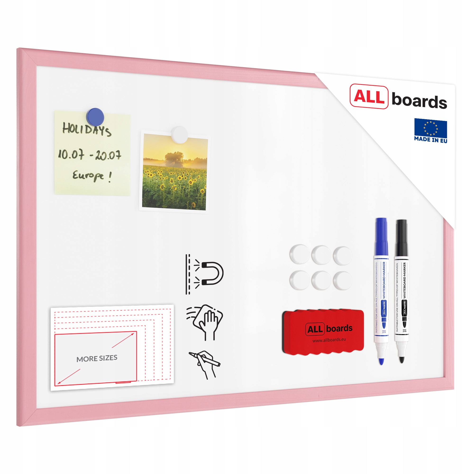 Рожева магнітна дошка біла сухостійка 60х40см дерев'яна