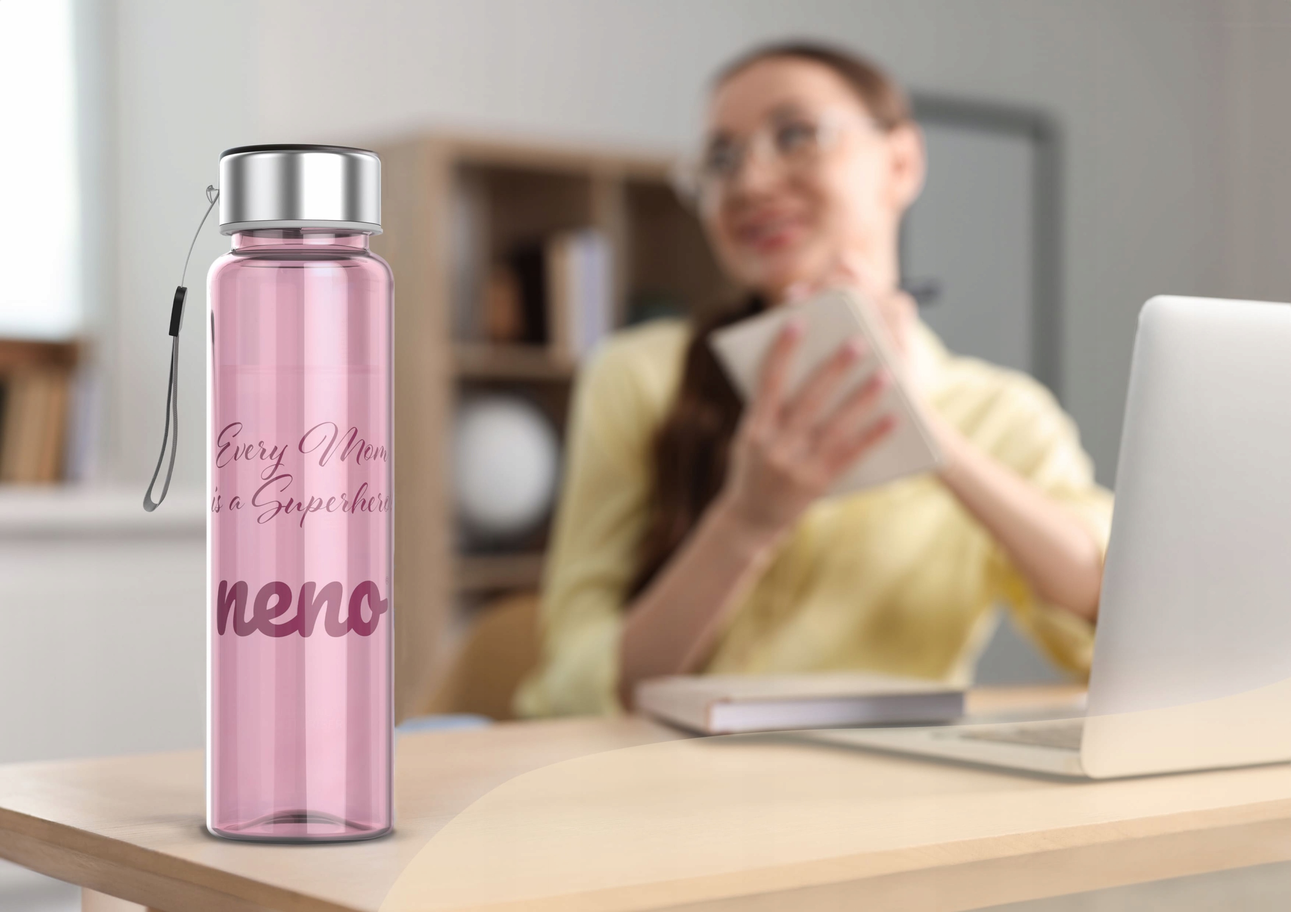 Ми проводимо багато часу на роботі, не можемо забувати про зволоження. З пляшкою для води Neno ви не тільки будете пити воду регулярно, але й скажете всім в офісі, що кожна мама – супергерой!