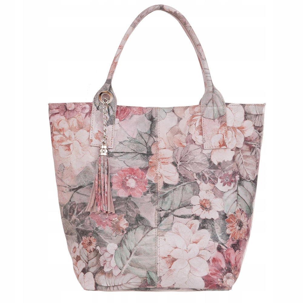 Vera Pelle - FLOWERS кольорова пастельна італійська шкіряна сумка формату A4, ЗАКРИВАЄТЬСЯ НА БЛИСКАВКУ