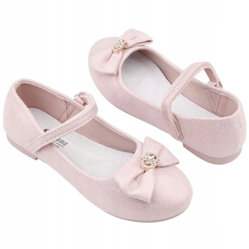 Дівчачі балетки на плоскому каблуці. Додатково прикрашена глітером і бантом з цирконами. На висоті плюсни ремінь, що підтримує стопу, застібається на липучку.