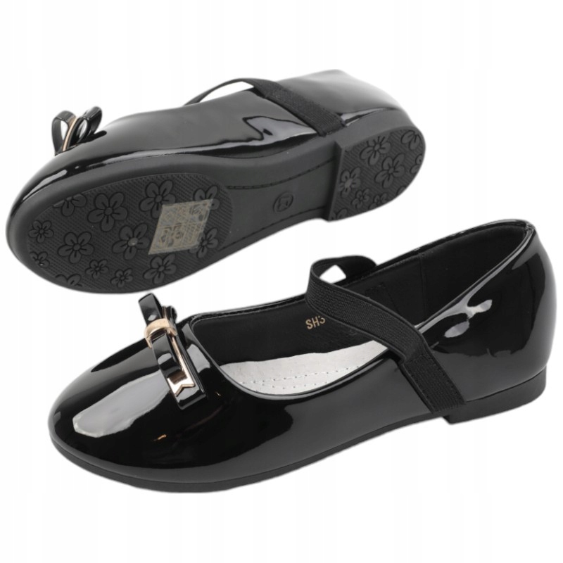 Балетки для дівчинки з екологічної лакованої шкіри, з класичним верхом. Посередині зручна еластична стрічка, яка підтримує стопу. Сліпони, з носиком із закругленими краями. Додатково додає шарму бантик кольору верху з додаванням золота. Вони додадуть дівочий акцент як у повсякденний, так і в елегантний стиль.